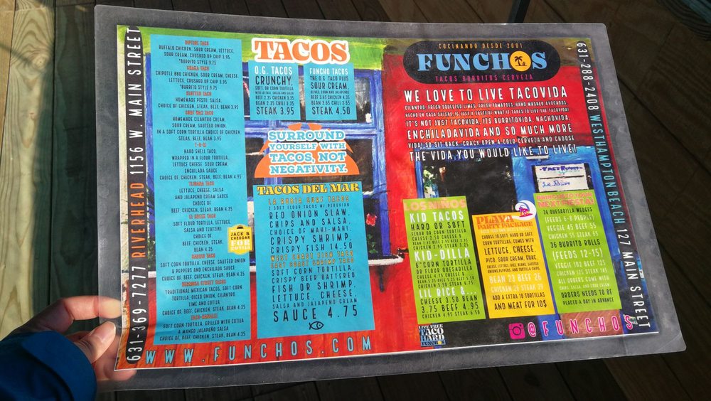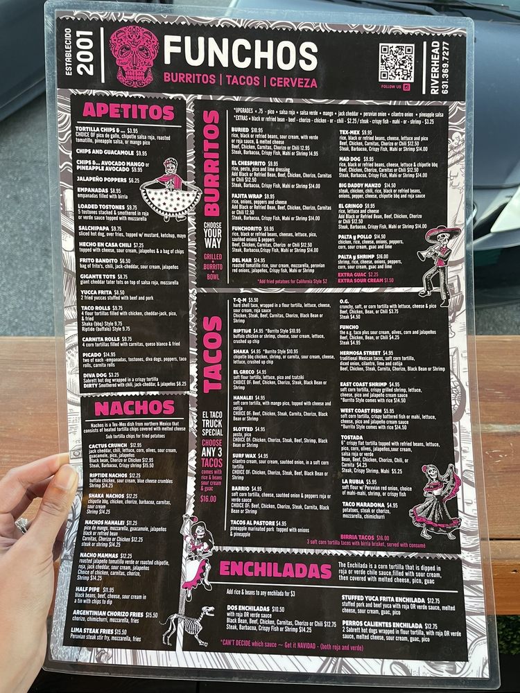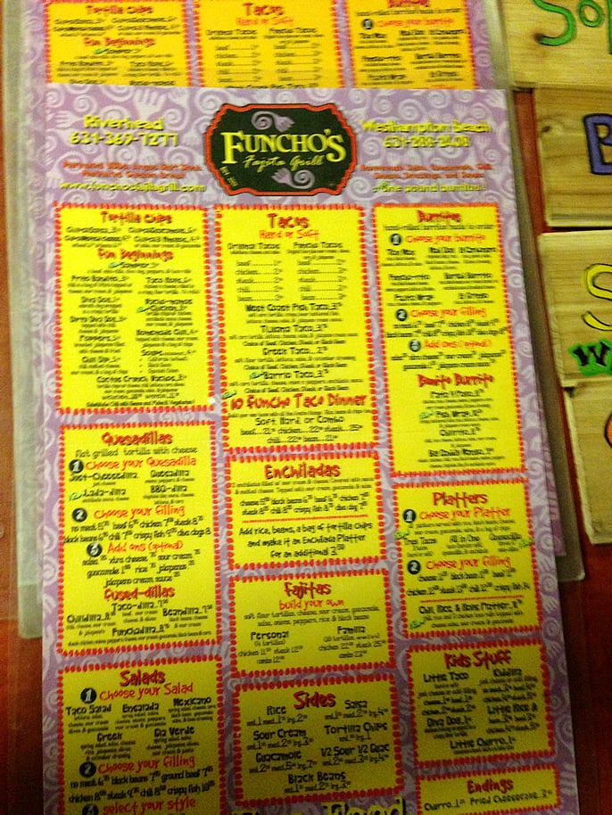 Funcho's is a Tex-Mex restaurant located in Riverhead, NY, offering a variety of options for both meat-eaters and vegetarians. The menu includes appetizers like Yucca Frita and Pozole, burritos like Mad Dog and Palta y Pollo, and combos like Vegano and Fajitas. Customers have praised the tasty dishes and friendly service at Funcho's, with favorites being the chicken quesadillas and nachos. The outdoor seating is perfect for enjoying a nice day, although some have mentioned the lack of air conditioning on hot days. Overall, Funcho's is a must-visit spot for Tex-Mex lovers looking for a fun and tasty dining experience.